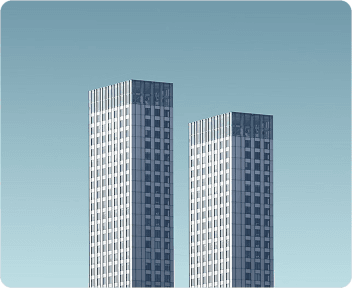 Here are two tall buildings with sleek glass facades, just as described. Both structures showcase modern design elements, glass panels that shimmer beautifully in the sunlight.